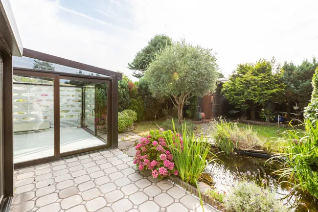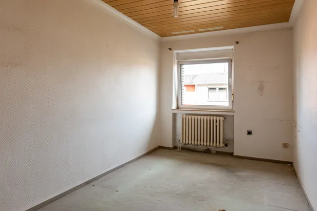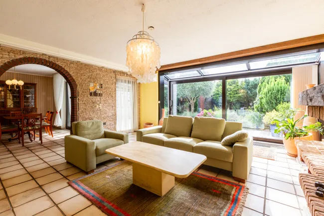 Das Wohnzimmer bietet genügend Platz noch für einen offenen Esszimmerbereich. Das große Schlafzimmer -welches zur Gartenseite ausgerichtet ist- unterstreicht die gute Raumaufteilung.